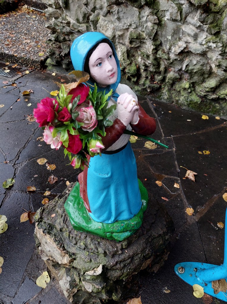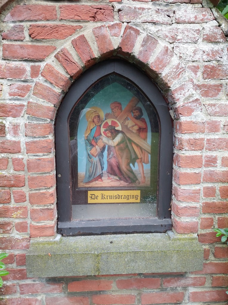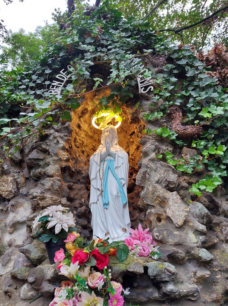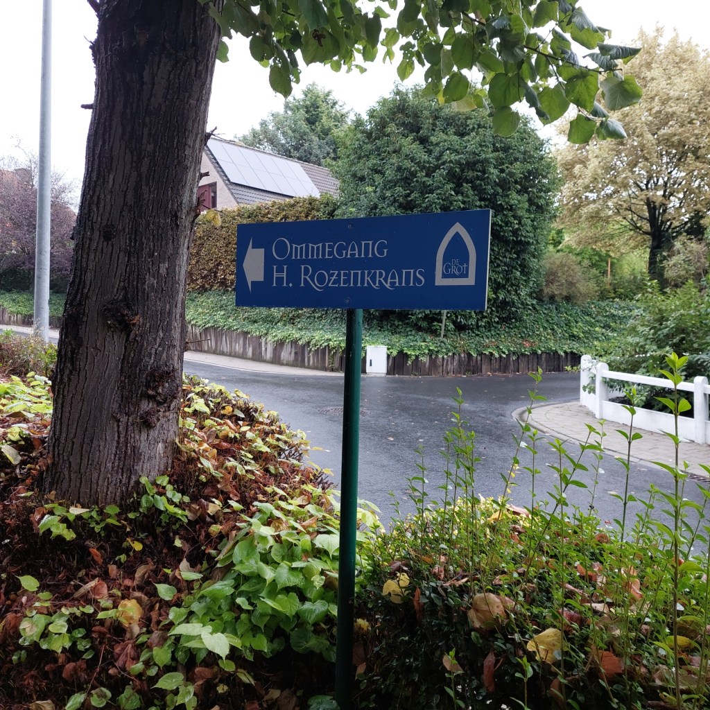 Achter de grot is er een ruime weide met een Rozenkrans ( kapelletjes).
