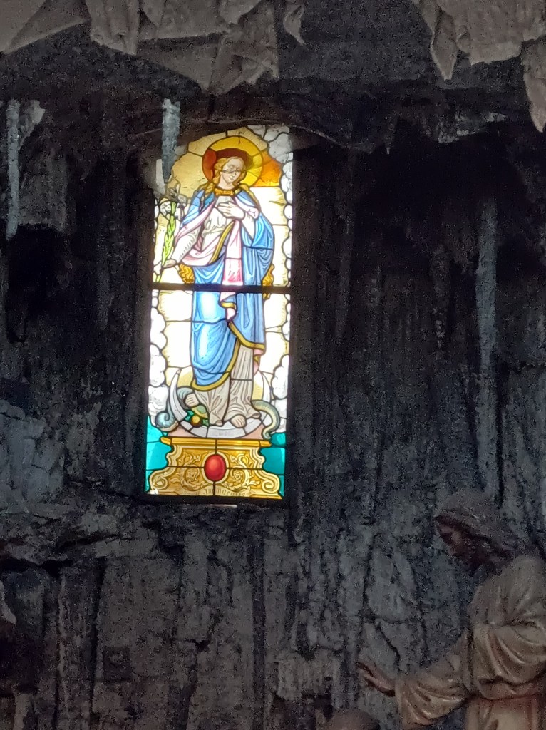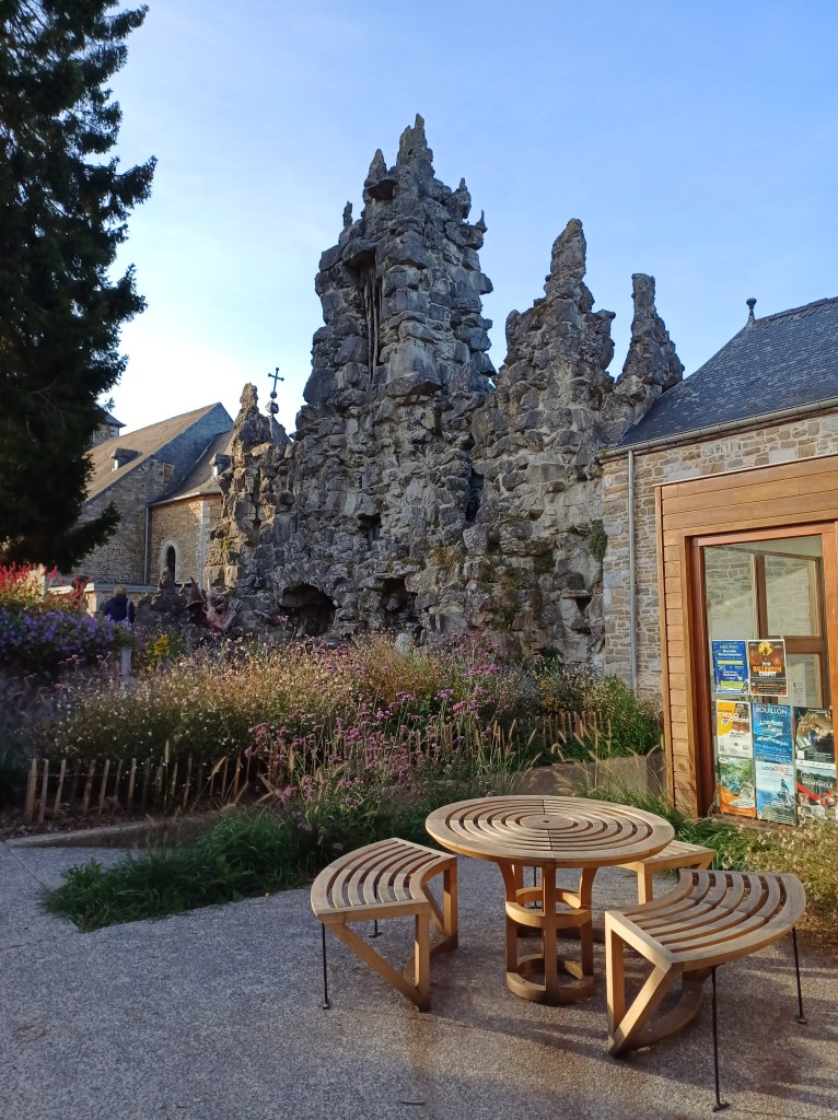 Deze grot werd gebouwd tussen 1900 en 1903 door Jules Gérard de toenmalige priester van het dorp en zijn parochianen, wat een enorm werk moet geweest zijn. Voor de fundering alleen al werd er tweehonderd vierkante meter grond verwijderd. De rotsblokken (gevonden in de omgeving) zijn tot 20 meter hoog gestapeld, en versierd met 22 standbeelden, waarvan vier in brons. Men herkent twee aartsengelen, een Mariabeeld, een duivel en vele andere.