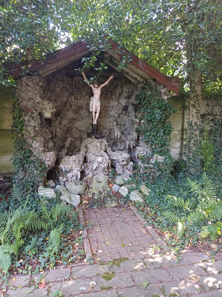 Deze Lourdesgrot staat in de tuin van de Grauwzusters en dateert uit 1900. In het “memorieboek van de zusters” staat er een beschrijving, namen van gevers en medewerkers. Het gaat om serene volkskunst.