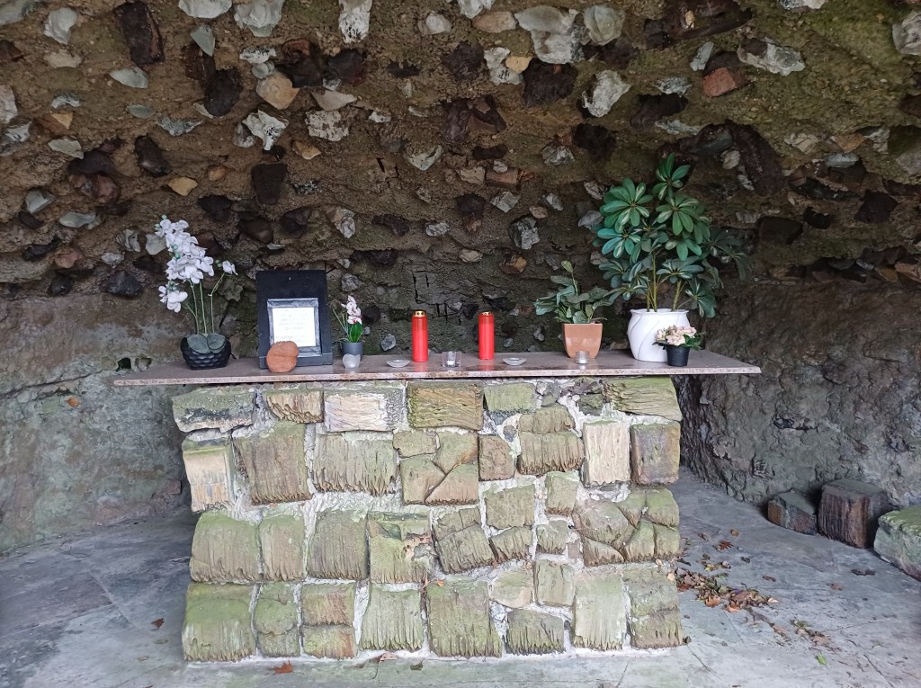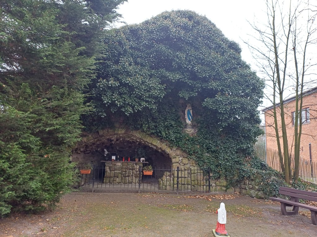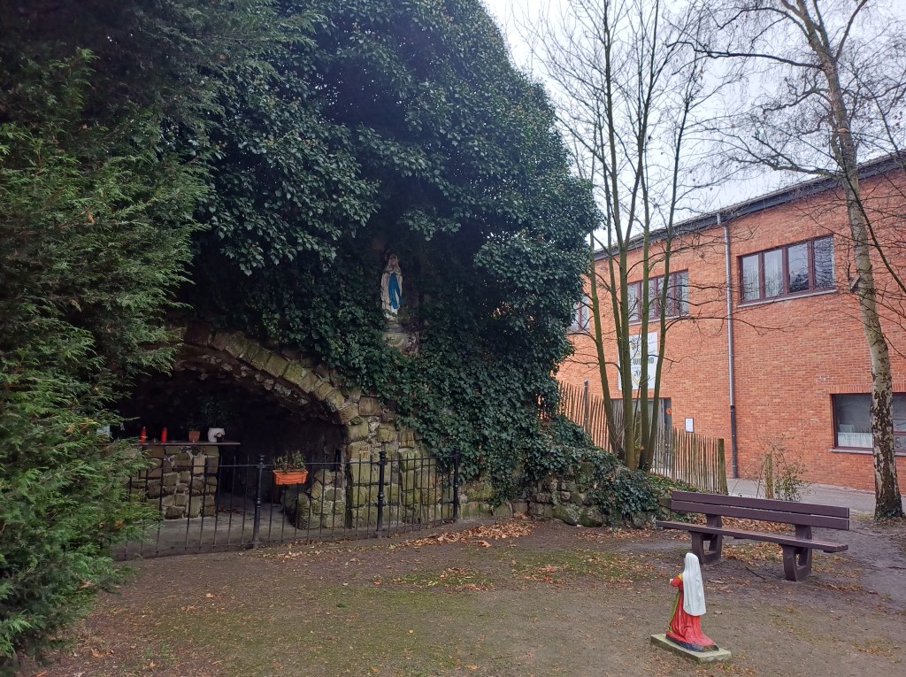 *Hierbij recente foto van de nog steeds bestaande Lourdesgrot.