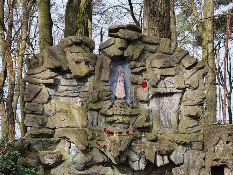 Recht tegenover de kapel, aan de overkant van de bosdreef is er op de resten van een bunker een kleine Mariagrot opgericht. Deze is verscholen tussen hoge struiken.