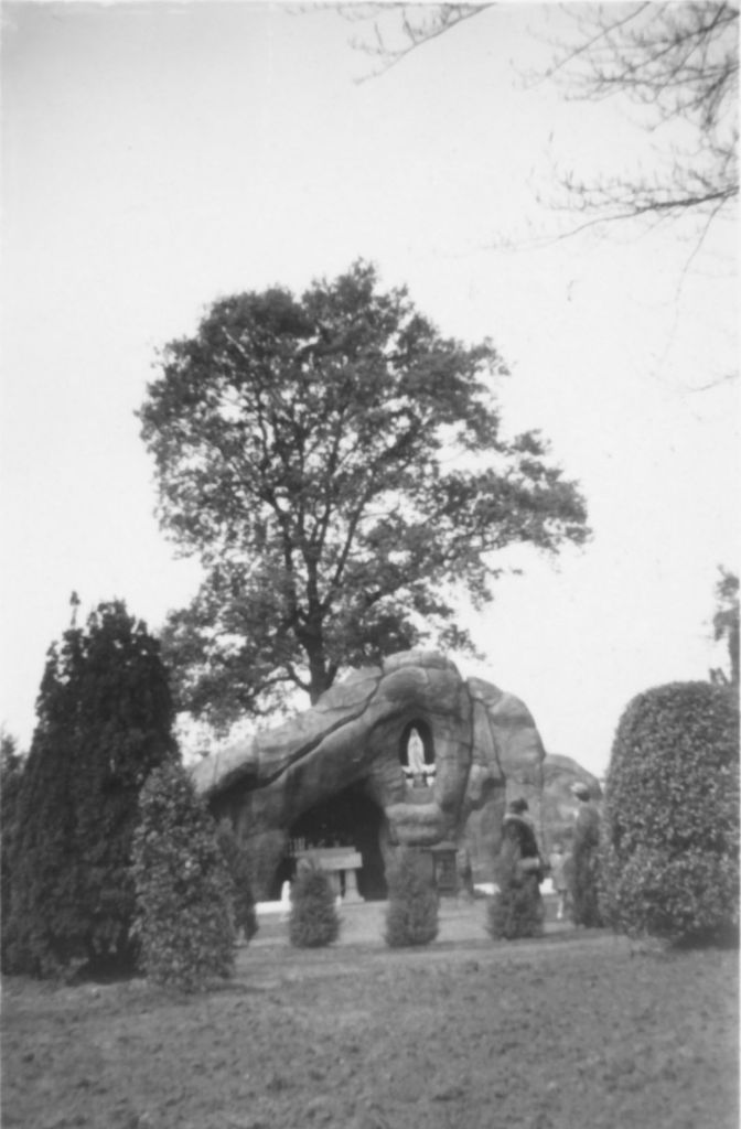Op foto 04 zien we, v.l.n.r., Mathilde Van Pul, mijn grootmoeder Maria Wouters (met zwarte hoed), mijzelf als vierjarige en mijn moeder (met handtas), Maria Jordens. Toen ik enkele jaren geleden de grot nog eens bezocht, stelde ik aan de achterzijde vast dat de constructie enige restauratie kon gebruiken.