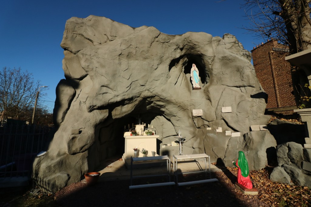 *Ik kwam maandag, tijdens een wandeling, een Lourdesgrot tegen op de Rue