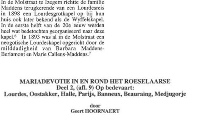 In de Molstraat te Izegem staat de zgn Wyffelskapel, gebouwd door de familie Maddens in 1898.