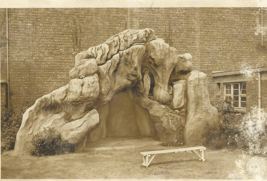 *De zuster beloofde ons na te vragen of er nog een oude foto bestaat van de Lourdesgrot, die spijtig genoeg gesneuveld is wegens de uitbreiding van de school.