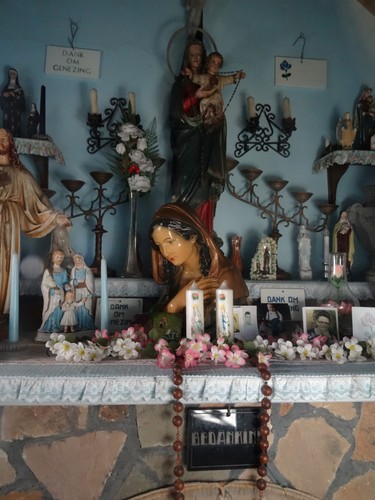 Verschillende Mariabeelden zijn aanwezig, waaronder ook een Lourdesgrotje