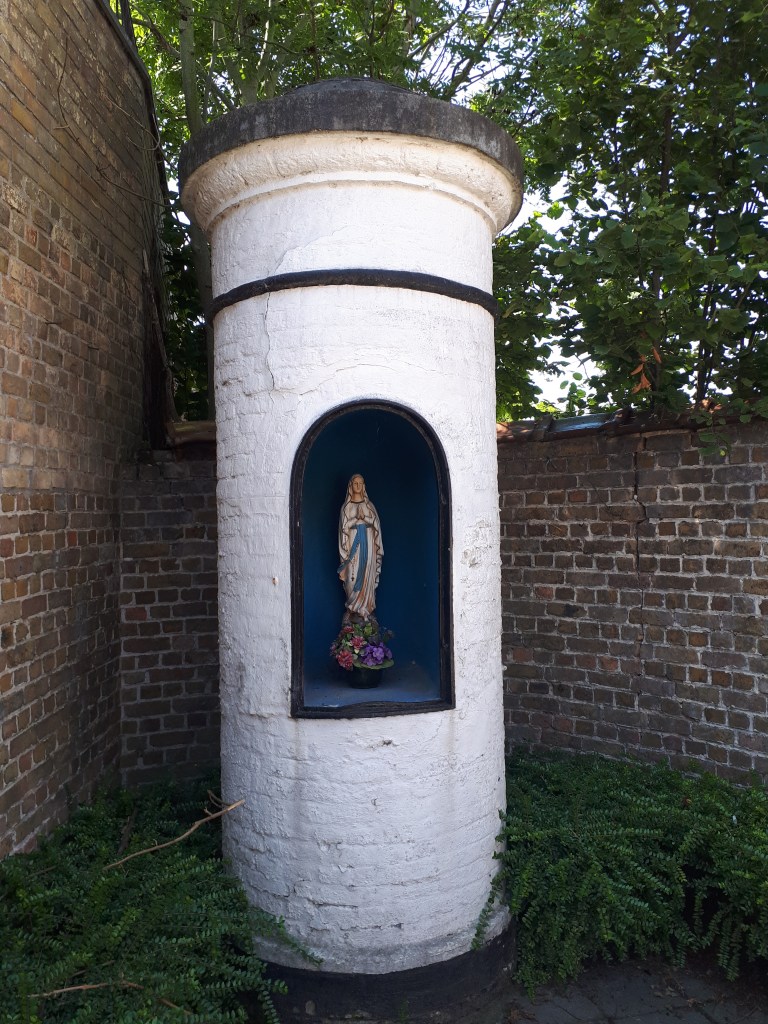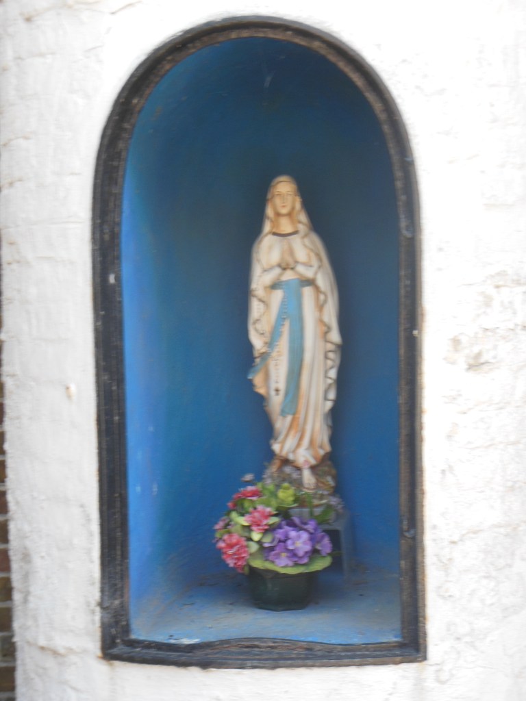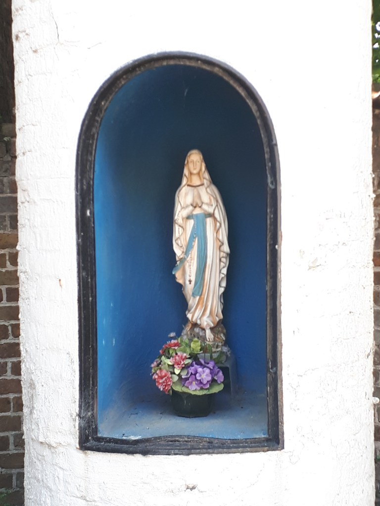 Maria in grenspaal (of in obus). Deze obus staat links van de Gemeentelijke Basisschool en rechttegenover huis nr. 21
