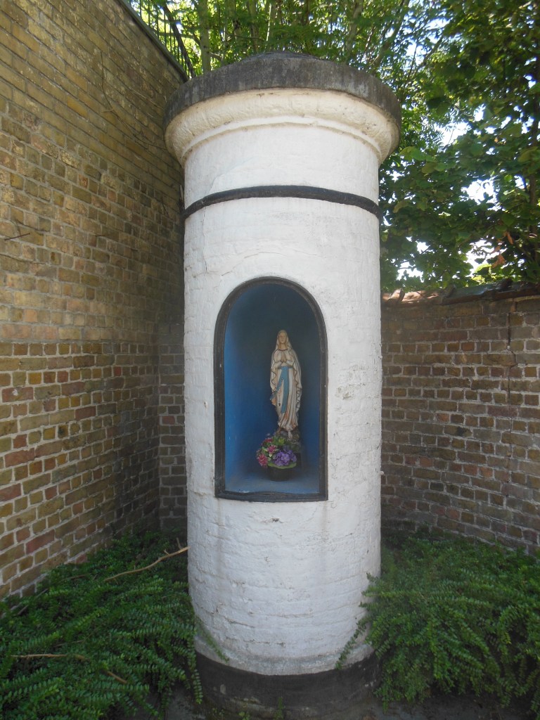 Roeselarestraat nr. 20 (rechts ervan). Lourdeskapelletje vermoedelijk van ca. 1899, in prieeltje omgeven door bakstenen muren en afgesloten met ijzeren hekken. Rond witgeschilderd kapelletje met arduinen bekroning, rondboognis met beeld. Waar men gaat langs Diksmuidse wegen, komt men een kapelletje tegen, s.d., s.l.