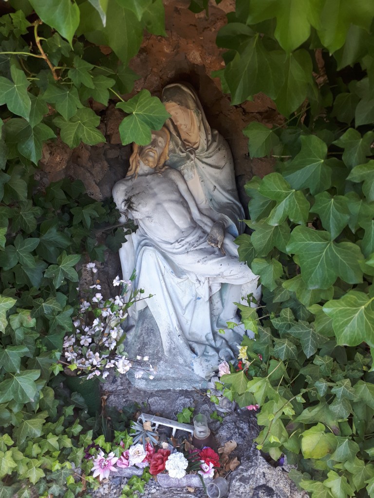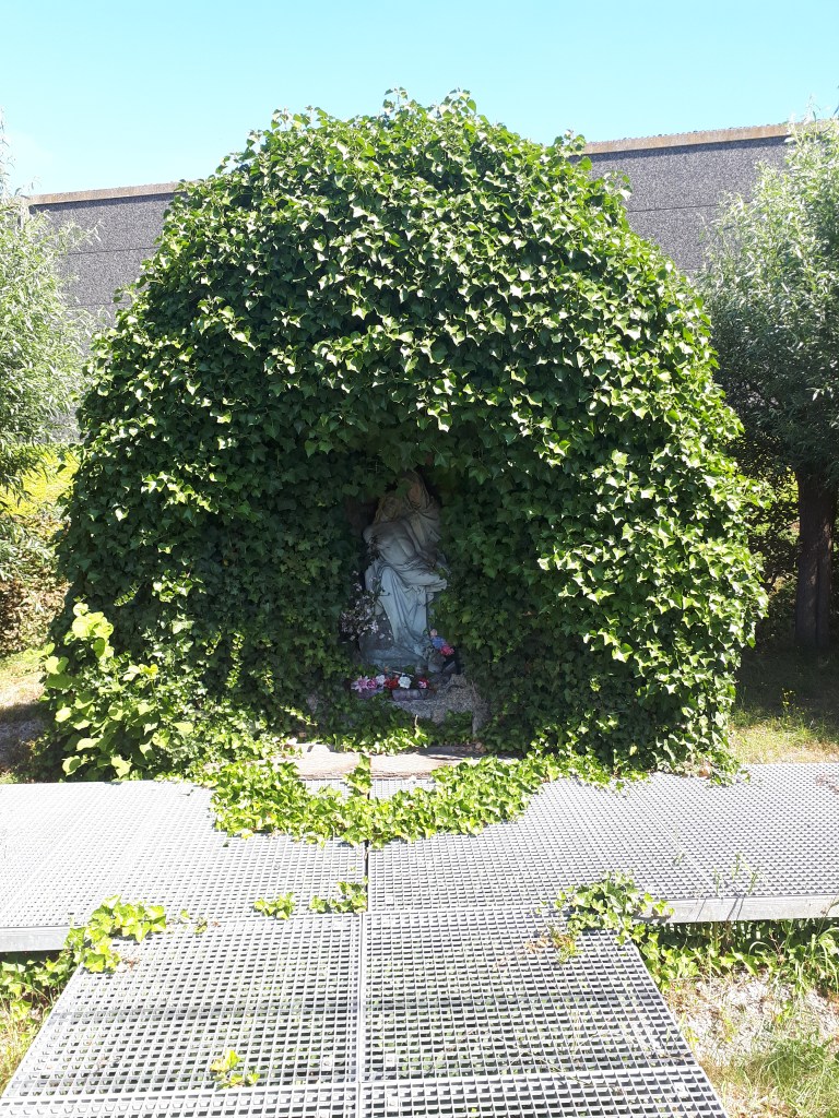 In de Ommegang West staat deze grot. Geen Lourdesbeeld, wel Piëta.