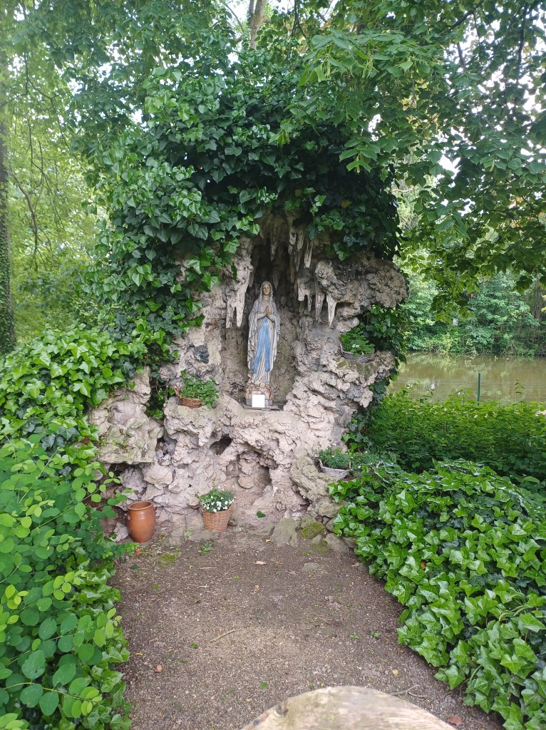Dit Lourdesgrotje uit 1910 staat links van het klooster in de prachtige tuin, vlakbij de vijver.