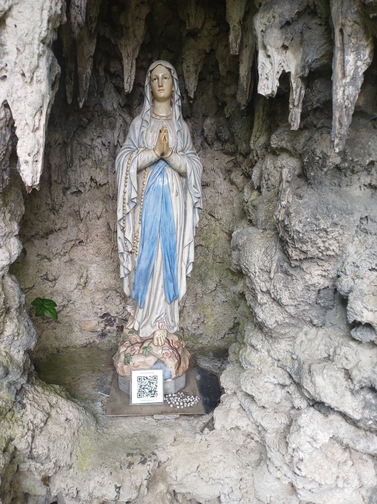 In de ontspanningsruimte van het klooster staat dit kleine Lourdesgrotje