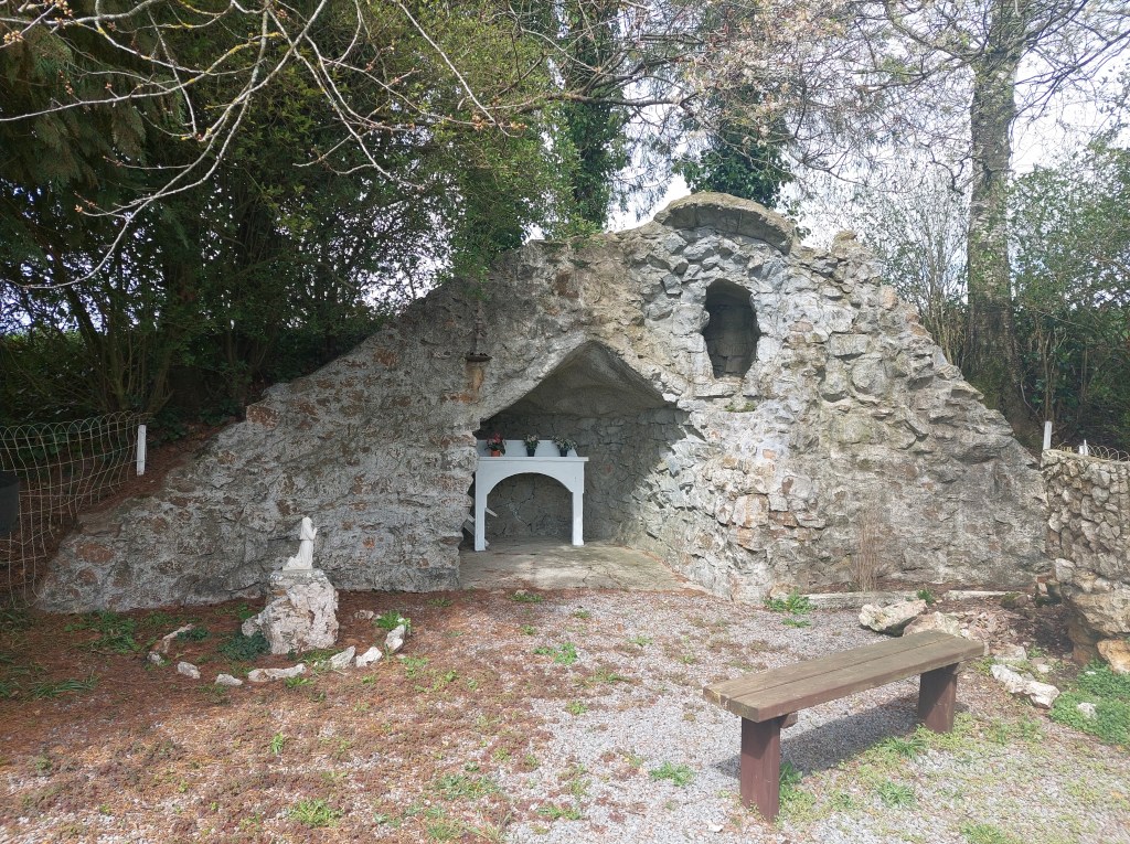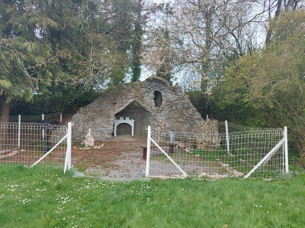 Lourdesgrot even verder dan de kerk, in de Rue de la Grotte links van het witte huis nr. 5A en tegenover huis nr. 4A.
