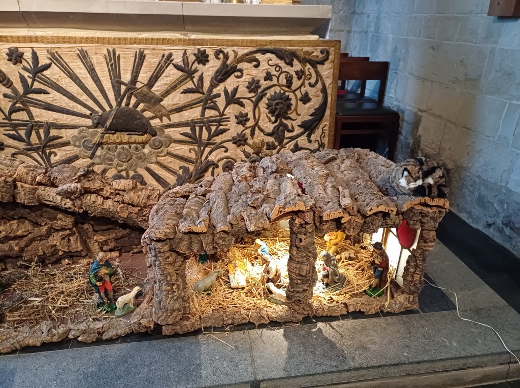 Prachtig Lourdesgrotje gespot in de wondermooie kerststal te Walsbets in de parochiekerk, met beelden uit Oberammergau (Duitsland).