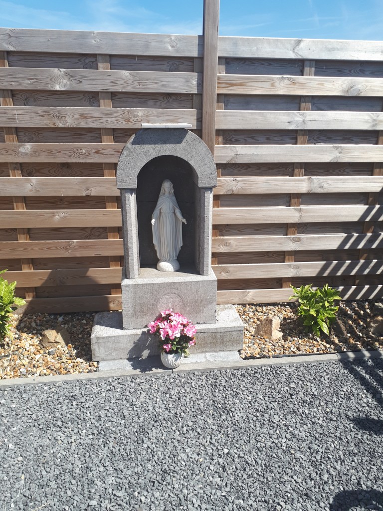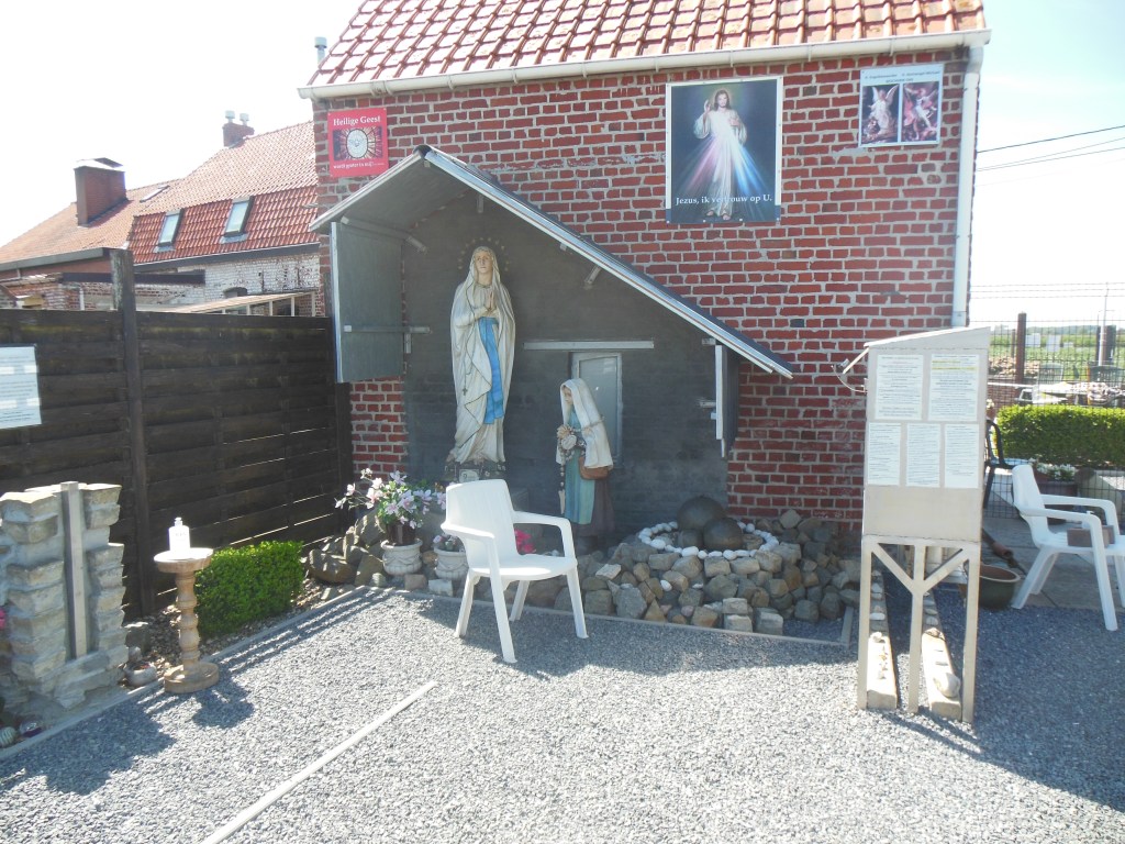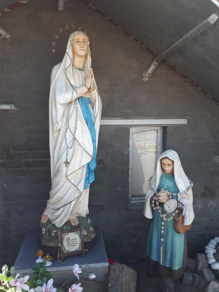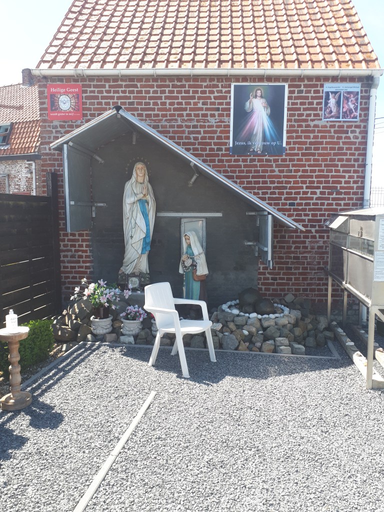 De beelden van de verdwenen Lourdesgrot te Staden (Ieperstraat) werden overgebracht naar de bidkapel te Oostnieuwkerke, Vijverdamstraat 2.