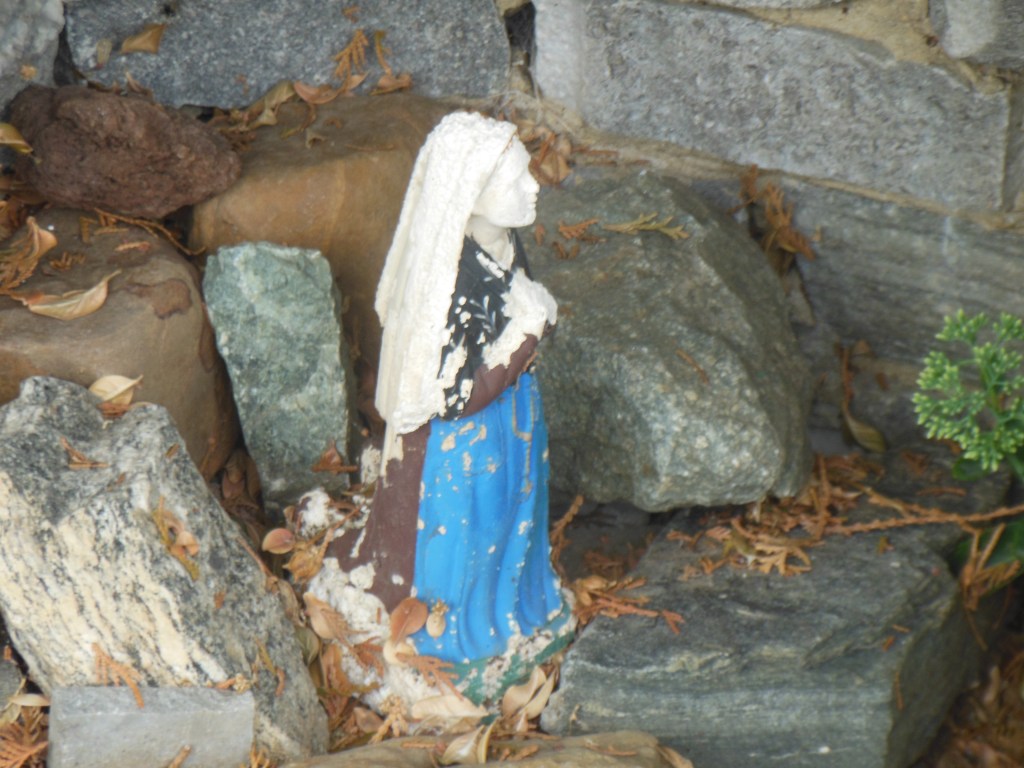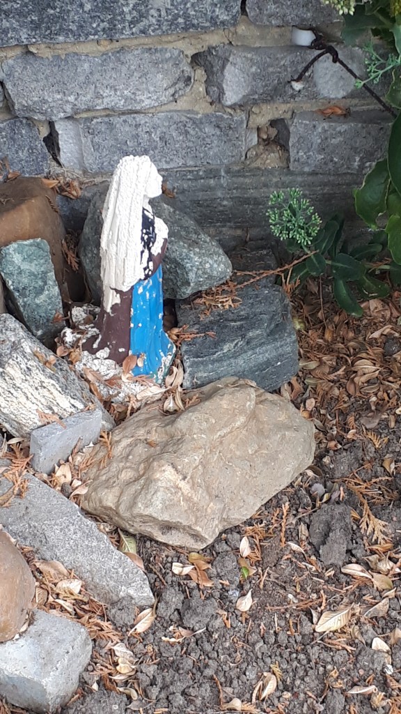 De Lourdesgrot in onze tuin , zelf gemetseld 40 jaar gelden, is 150 cm hoog en 2 meter breed.
