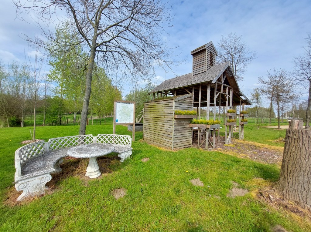 Aan de verkeerslichten op de Diestesteenweg te Herk-de-Stad ,net na de Holebekestraat (langs rechts), staat dit mooie bezinningsparkje met Onze-Lieve-Vrouw van Lourdes als gastvrouw.