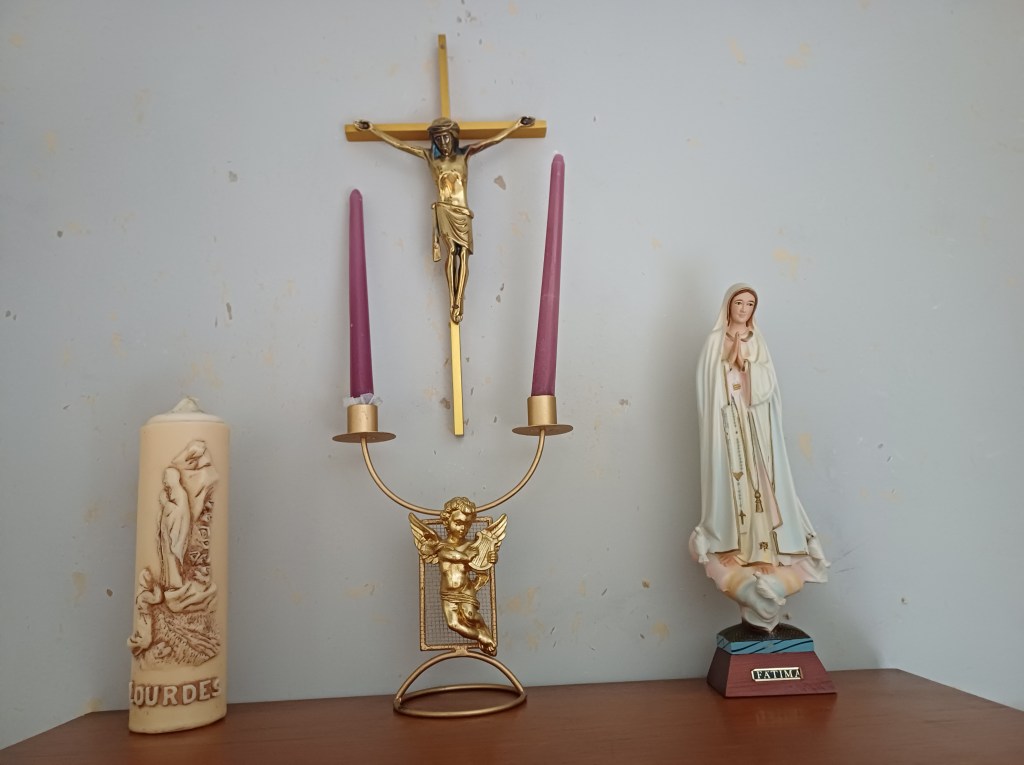 Thans staan er bij hun zoon in de Pepijnstraat 13/6 meerdere herinneringen aan Lourdes en Fatima