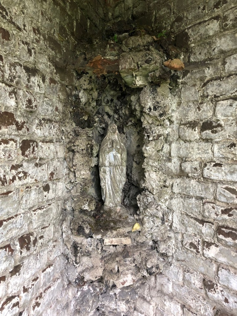 Kleine Lourdesgrot in privéstadstuin van herenwoning te Gent (Rooigemlaan 465), ingemetst in hoek van twee tuinmuren. Tevoorschijn gekomen na rooien van zware klimopbegroeiing. Geen data over constructie van de grot, maar zeker niet vóór de jaren 1930 (bouw woning).