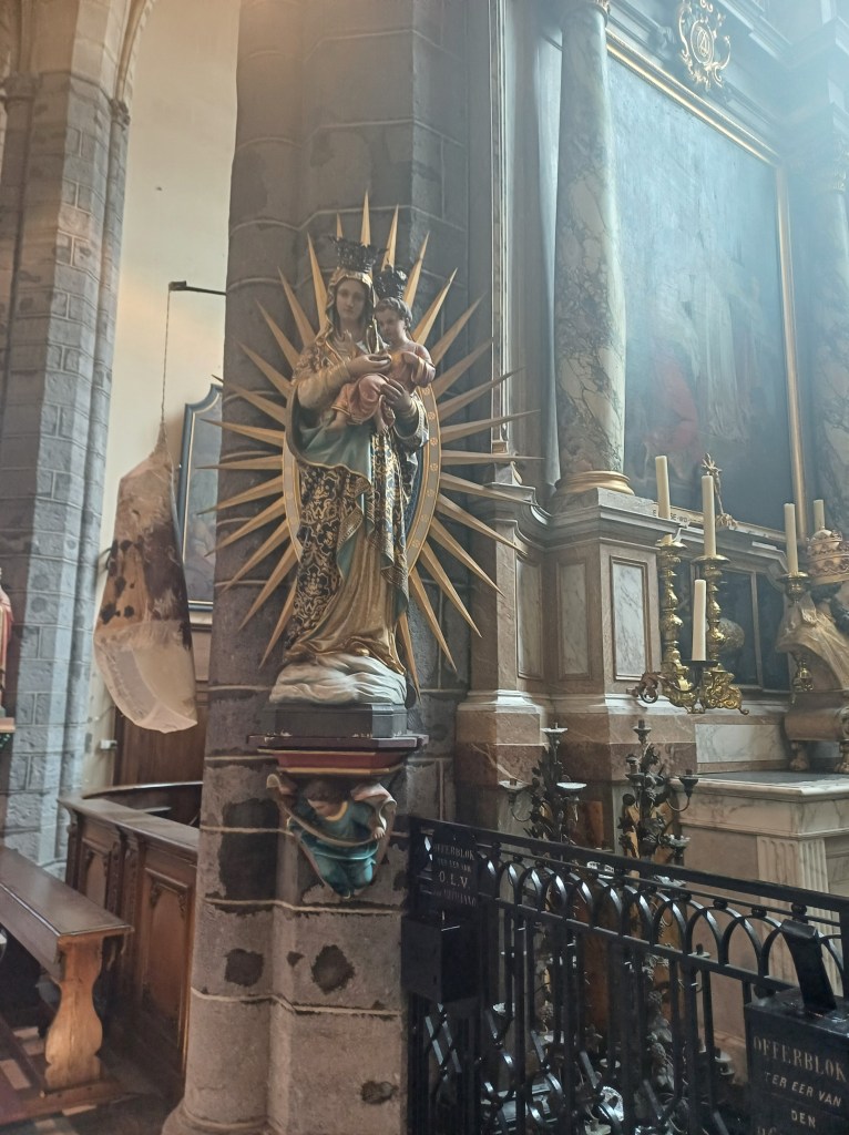Ter gelegenheid van de dag van het Compostelagenootschap in Gent ontdekte ik in de Sint-Jacobskerk dit prachtige beeld van OLV van Lourdes.